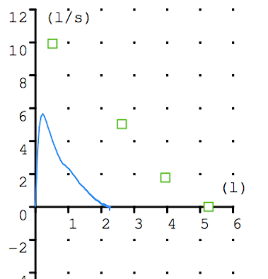 En un patrón restrictivo la curva será globalmente pequeña pero de morfología normal. Al ser reflejo de patología donde los volúmenes pulmonares funcionantes están disminuidos (enfermedades pulmonares restrictivas) el punto de corte en el eje de abscisas será anterior de forma clara a la marca de la curva teórica de referencia para nuestro paciente (en nuestro espirómetro marcado con un cuadrito verde sobre el eje de abscisas)